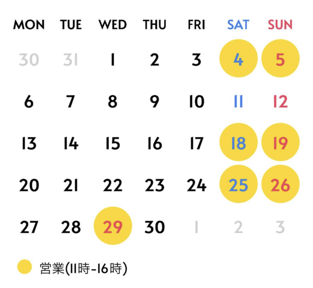 遠州つぼやきいも4月の営業カレンダー